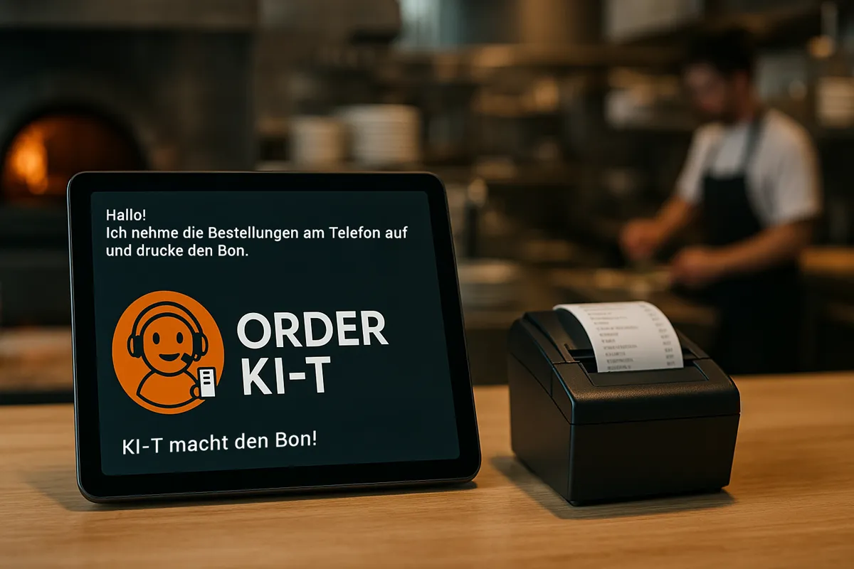 Nimmt die Bestellung am Telefon auf und druckt den Bon 24/7. Wie ein Mensch - voll automatisch.