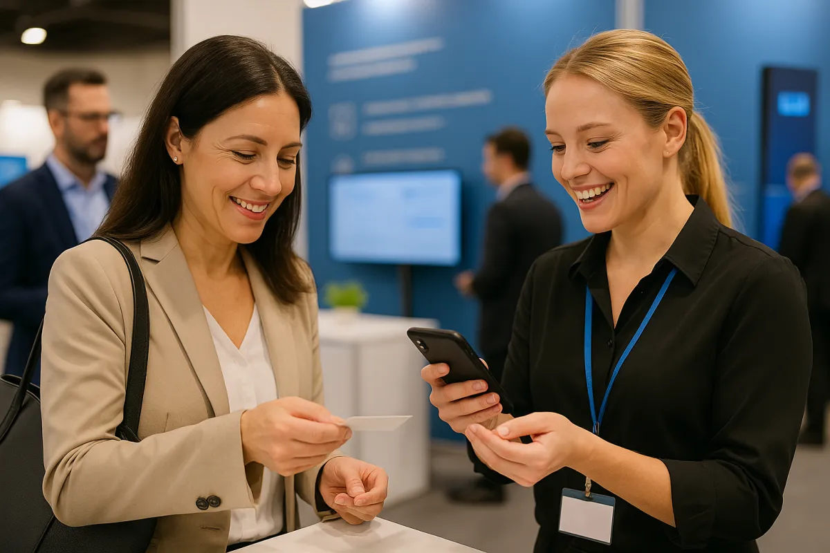 Visitenkarten auf Messen scannen und fertig. Pflege und Nachbearbeitung übernimmt unsere KI voll automatisch – vom Lead bis zum Follow-Up.